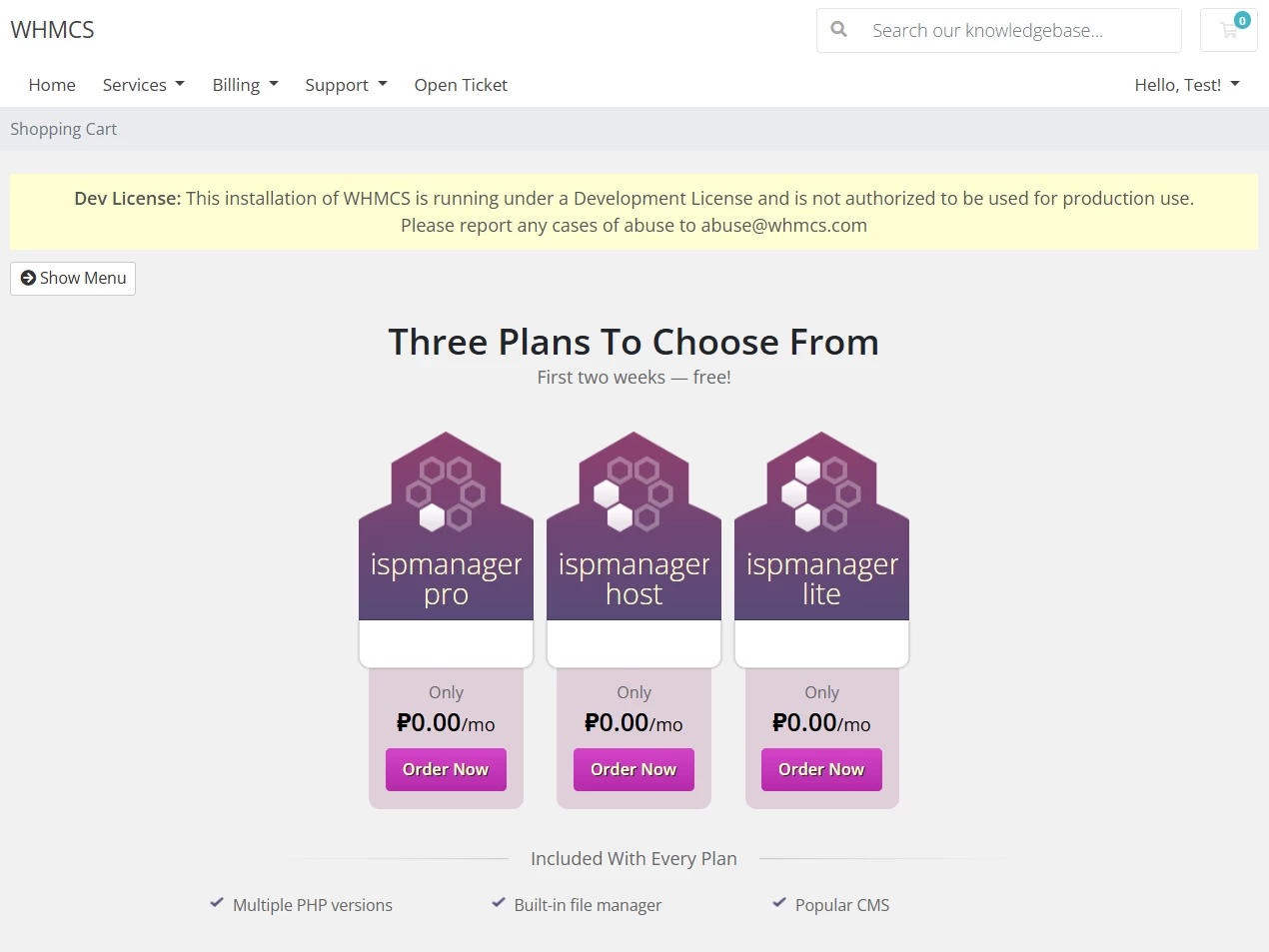 To avoid funds being debited from your ispmanager account when placing a test order, use the free ispmanager trial plan for the test license in the module settings.
