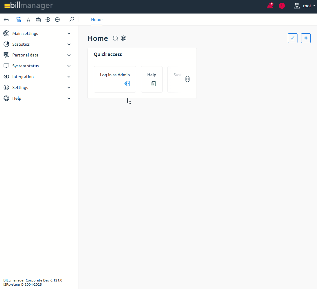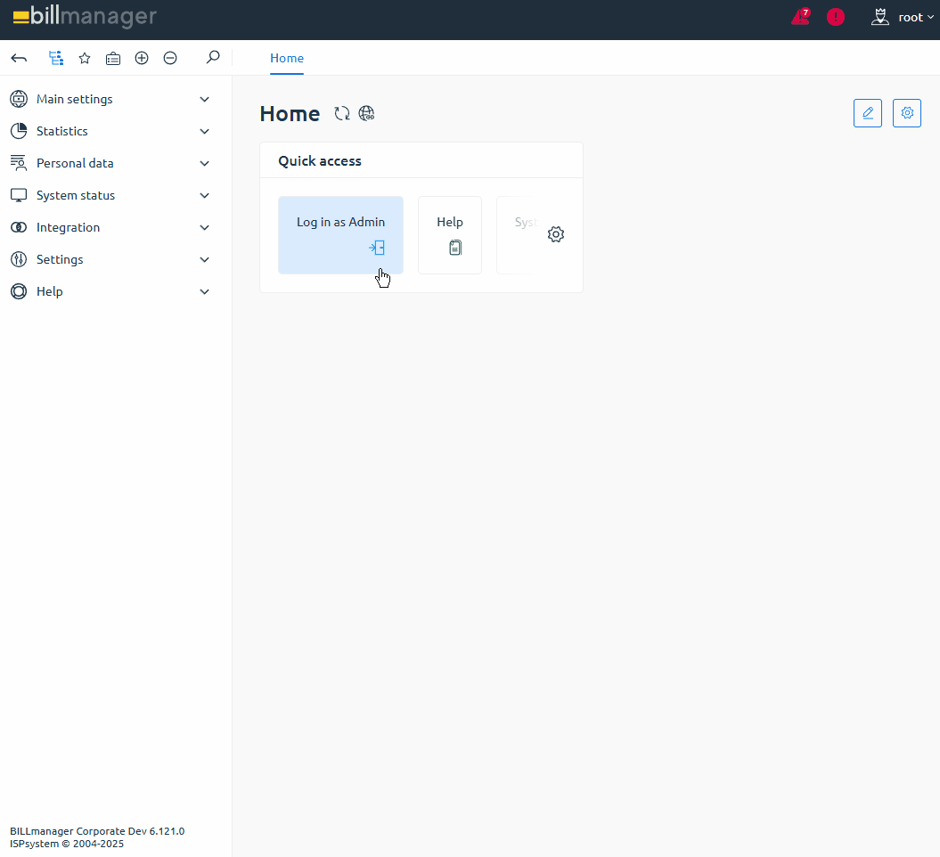 - Log in to BILLmanager as an administrator at https://YOUR_DOMAIN/billmgr.