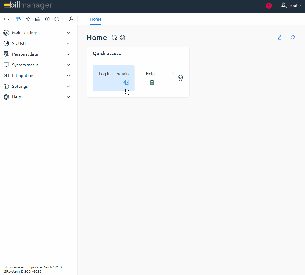 - Log in to BILLmanager with an administrator account at https://YOUR_DOMAIN/billmgr.