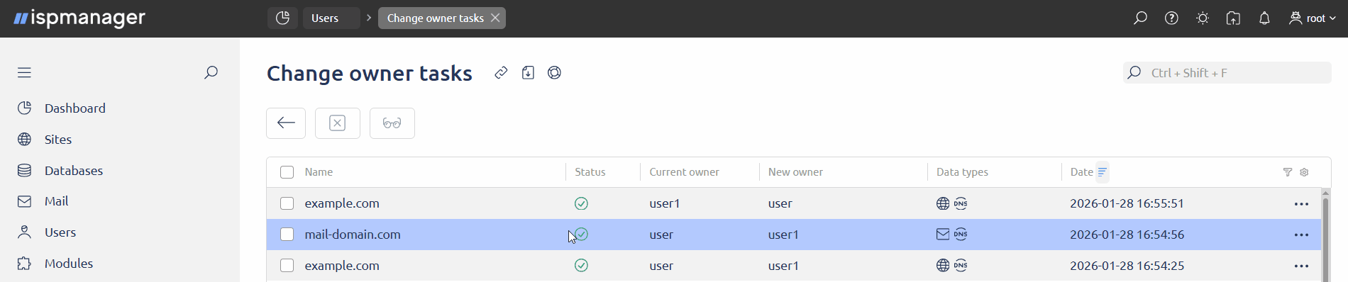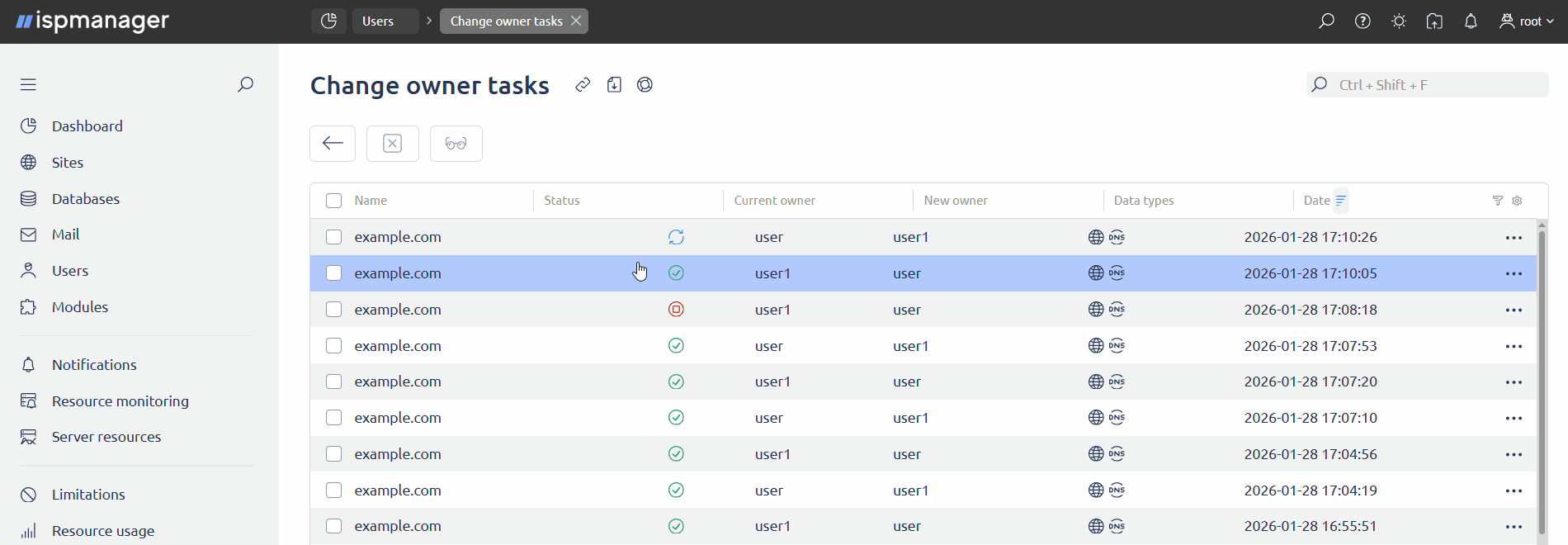 If the new owner lacks rights or permissions to certain resources, such as access to a specific PHP mode or the number of sites available, the system will automatically increase the required limits and enable the necessary access.