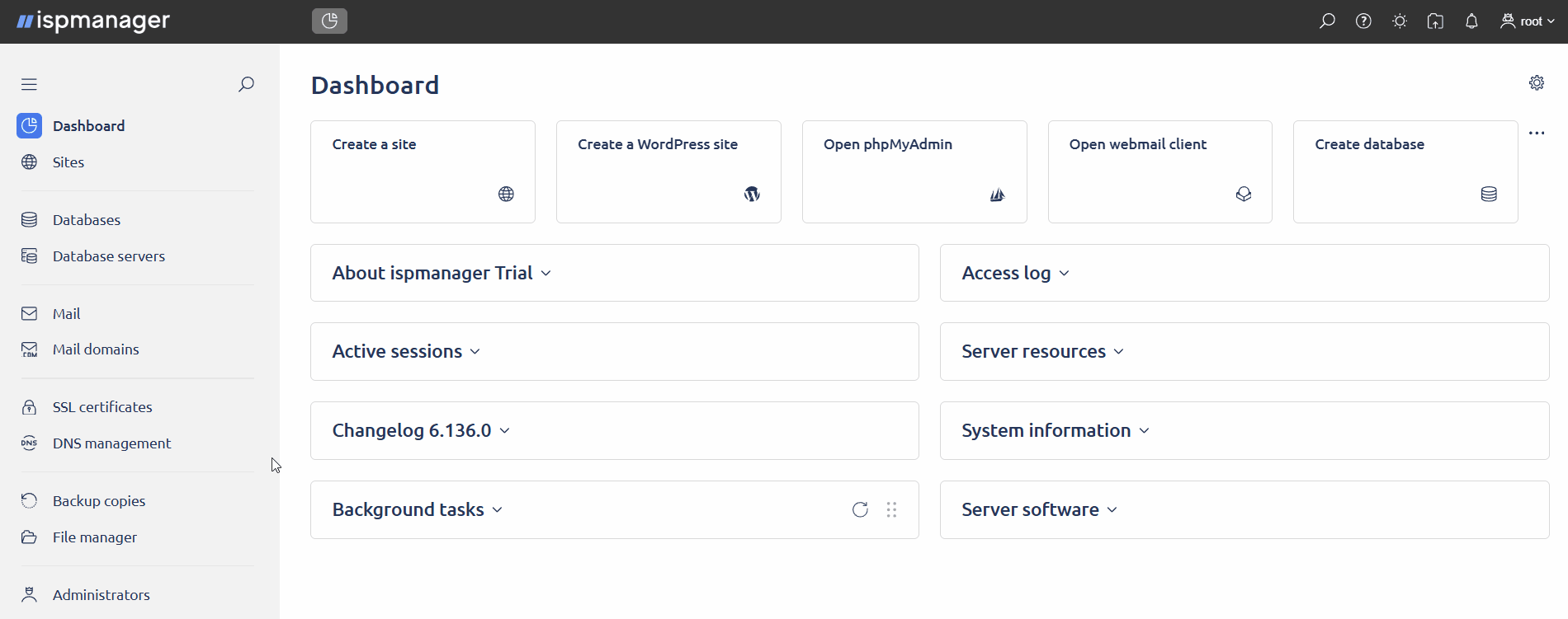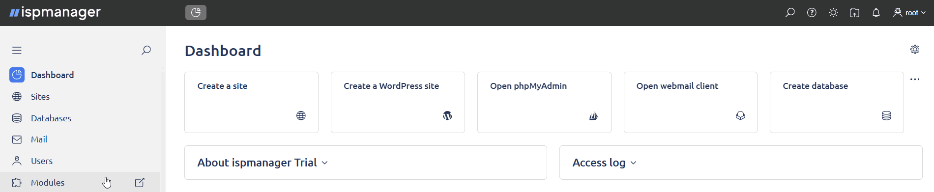 If the template engine is enabled, the panel configuration file /usr/local/mgr5/etc/ispmgr.conf will contain the Option EnableWebTemplate parameter.