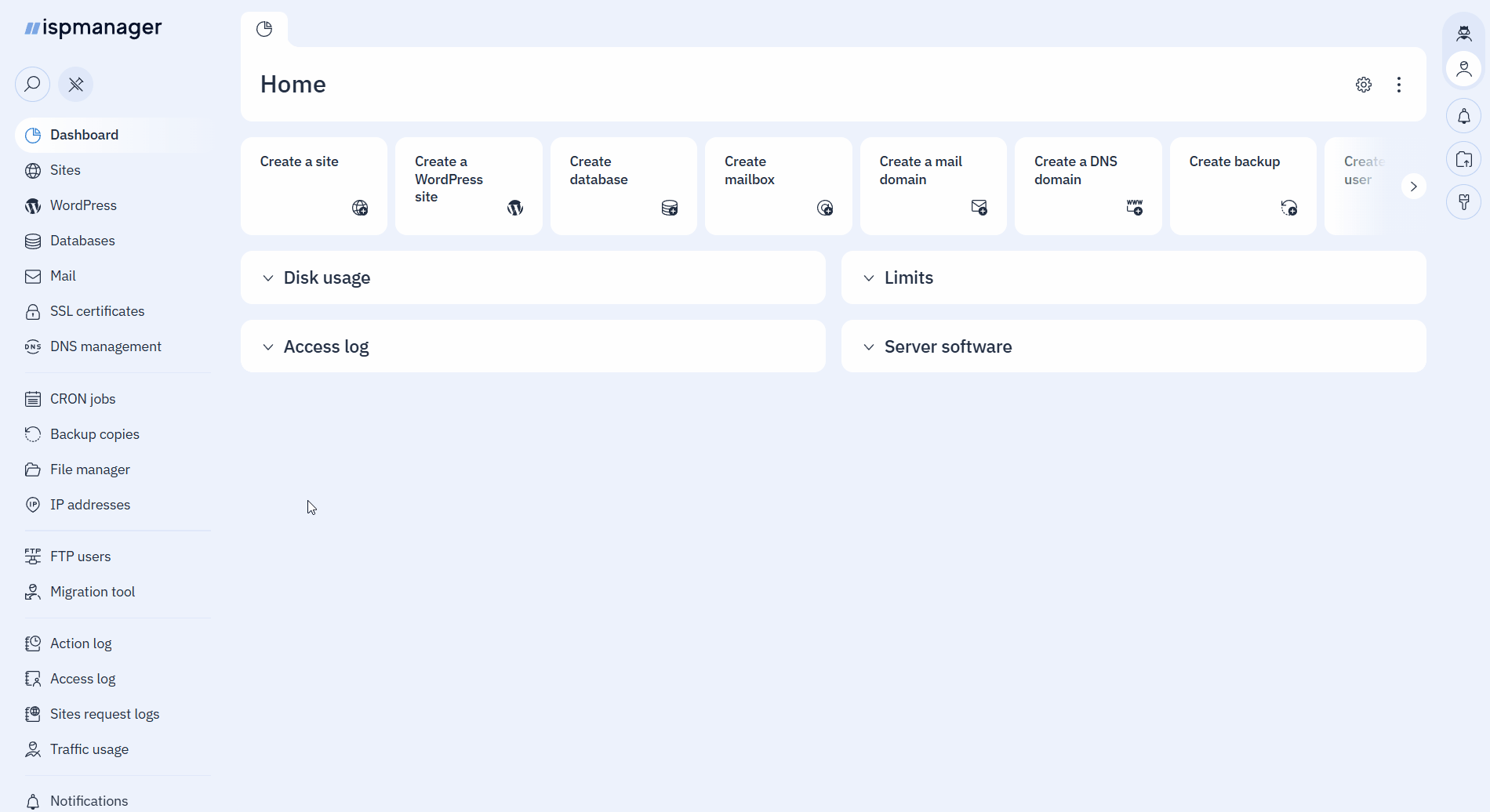 In ispmanager, users can configure their own storage in addition to the primary storage configured by the administrator. This increases data security by duplicating backups from the panel's primary storage to an external user storage.